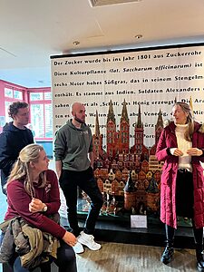 Während der Führung erfuhren wir, wie aufwendig und traditionell das weltberühmte Niederegger-Marzipan hergestellt wird: vom sorgfältigen Rösten der Mandeln bis zur kunstvollen Verarbeitung. Katharina gab uns spannende Einblicke in die lange Unternehmensgeschichte, die seit 1806 untrennbar mit Lübeck verbunden ist, und beantwortete geduldig alle unsere Fragen – von historischen Anekdoten bis hin zu Details der heutigen Produktion.